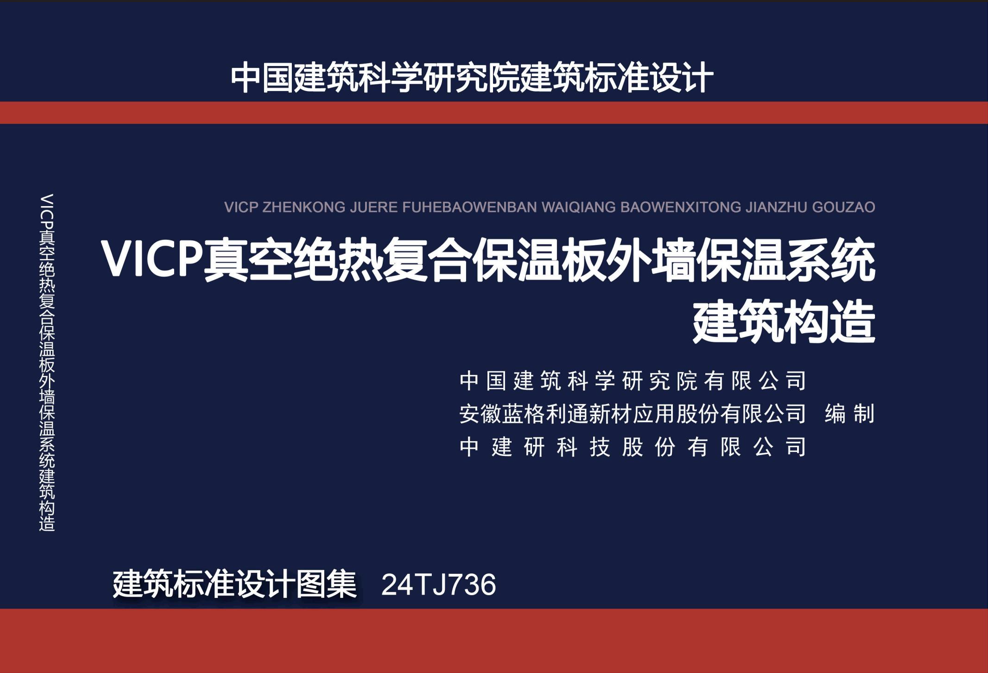 由中國建筑科學研究院有限公司和安徽藍格利通新材應用股份有限公司共同編制的建筑標準設計圖集《VICP真空絕熱復合保溫板外墻保溫系統建筑構造》,經中國建研院中建研科技股份有限公司建筑工業化事業部組織審查,現予以發布。圖集統一編號:CABRT122,圖集號:24TJ736,自2024年4月22日起實施。