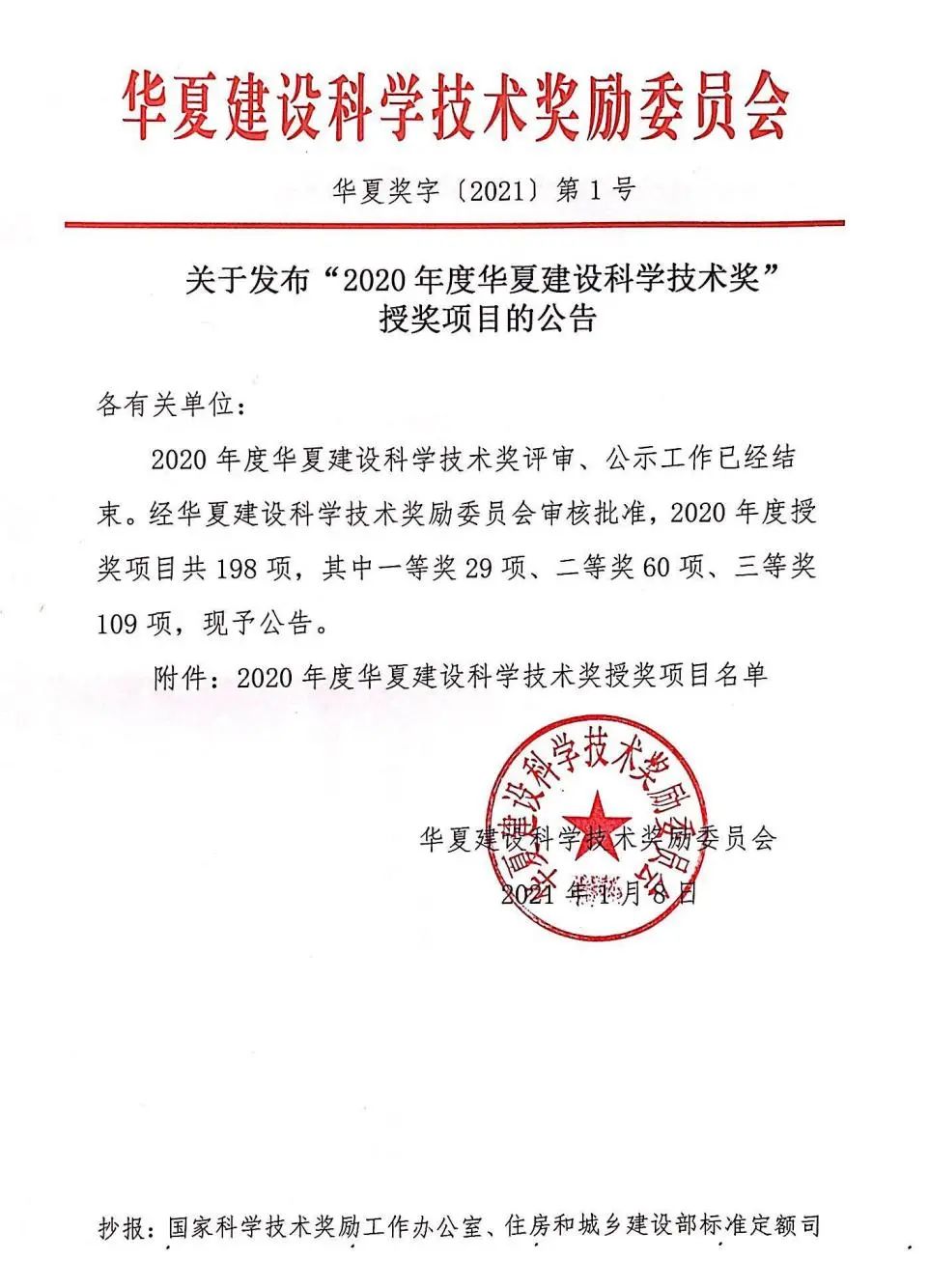 “華夏建設科學技術獎”是經國家科學技術獎勵辦公室批準,以社會力量辦獎的形式設立的建設行業科學技術大獎,旨在充分發揮廣大科技工作者的積極性和創造性,貫徹科教興國和可持續發展戰略,提升我國建設行業的綜合技術水平。