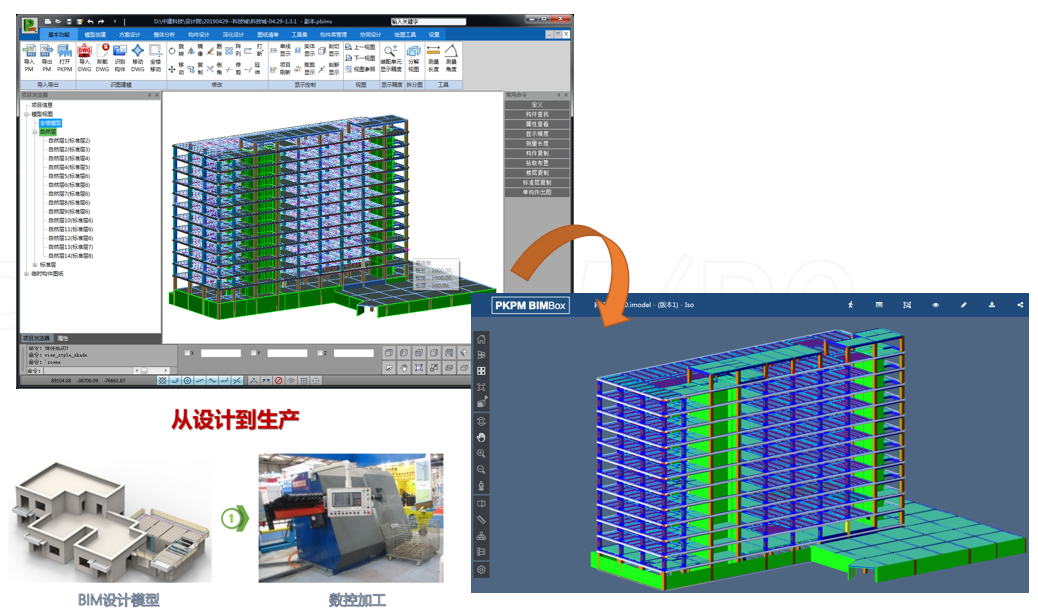 項目成果PKPM-PC提供了多種契合規范的智能化設計手段和輔助工具,基于PKPM-BIM平臺實現了裝配式結構分析、構件拆分與預拼裝、 國標及多地裝配率計算、構件安全驗算、構件深化設計與碰撞檢查、自動出圖、自動統計清單、生產數據導出等。經廣大用戶驗證,PKPM-PC可滿足裝配式結構計算、方案設計和深化設計的不同需要。