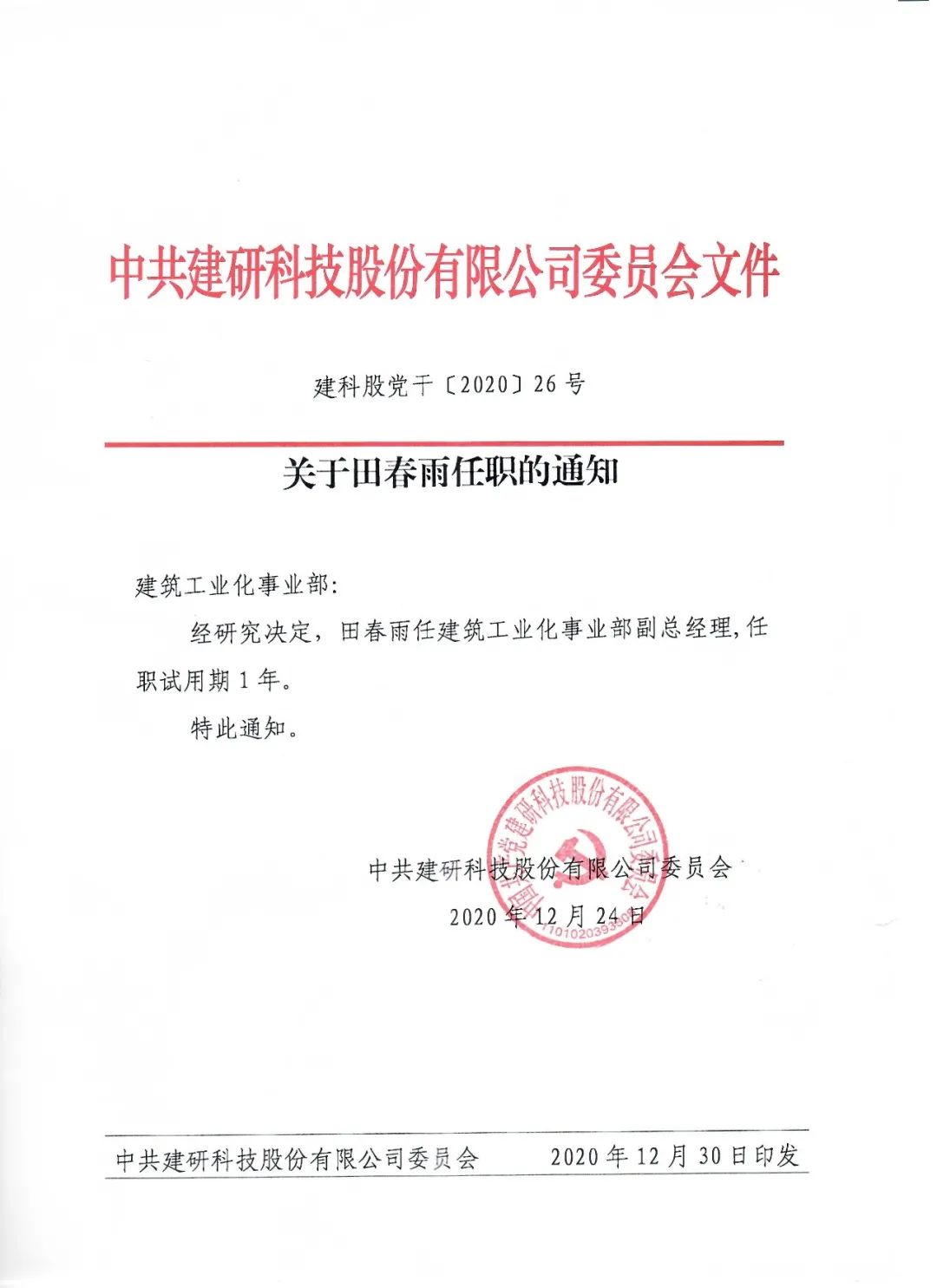 大會由公司運營管理部經理段秀芝主持。公司人力資源部總監屈冠林宣讀建研科技組織結構調整和人員任命文件,將原建筑工業化研究中心和原產業化事業部合并為建筑工業化事業部。
