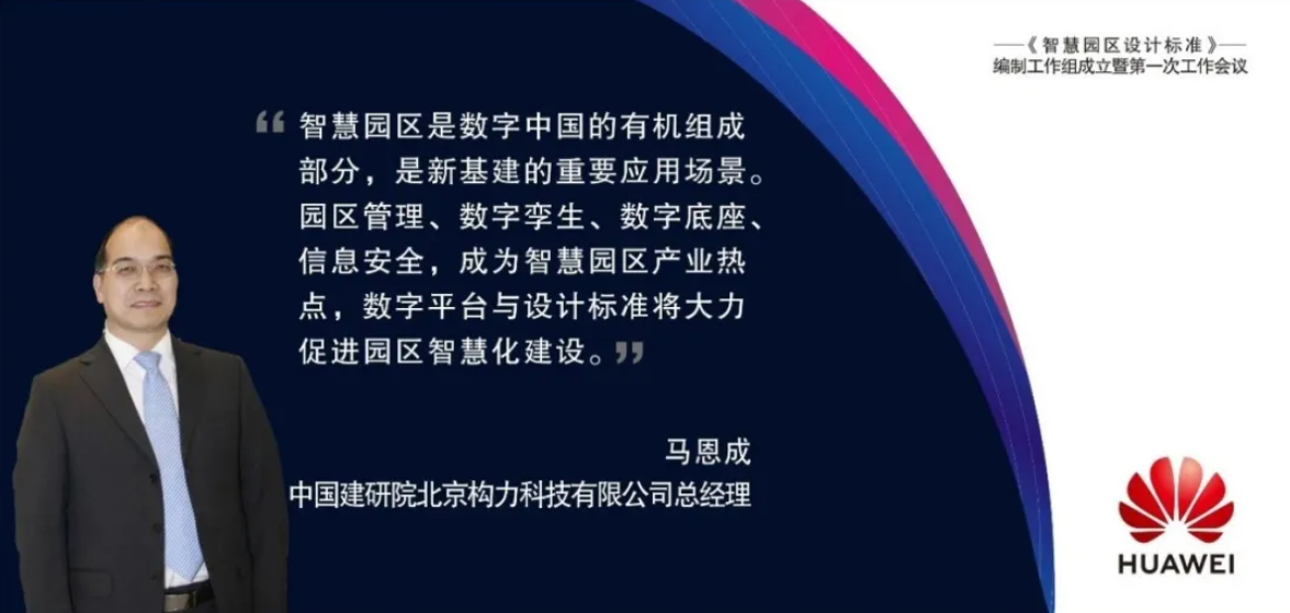 會(huì)上,北京構(gòu)力科技有限公司馬恩成總經(jīng)理、華為智慧園區(qū)業(yè)務(wù)部總裁蘇寶華博士分別代表主編單位進(jìn)行了主題報(bào)告;在《智慧園區(qū)產(chǎn)業(yè)熱點(diǎn)介紹》中,馬恩成總經(jīng)理從園區(qū)管理智慧化支撐及智慧園區(qū)促進(jìn)建筑業(yè)數(shù)字化轉(zhuǎn)型的角度介紹了智慧園區(qū)的產(chǎn)業(yè)熱點(diǎn),指出智慧園區(qū)未來(lái)發(fā)展對(duì)于“數(shù)字平臺(tái)”和“設(shè)計(jì)標(biāo)準(zhǔn)”的需求,介紹了華為與構(gòu)力為建筑行業(yè)共同打造的集5G、云、AI、BIM等新信息技術(shù)的BIM使能平臺(tái),通過(guò)“標(biāo)準(zhǔn)+平臺(tái)+生態(tài)”的形式,為智慧園區(qū)的未來(lái)發(fā)展打造一個(gè)繁榮的開(kāi)發(fā)者生態(tài),為數(shù)字中國(guó)奠定基礎(chǔ)。