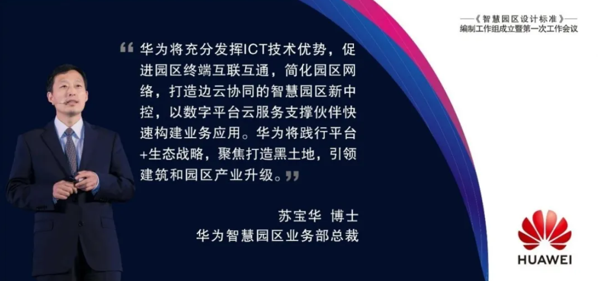 最后,華為智慧園區(qū)業(yè)務(wù)部CTO王結(jié)紅介紹了標(biāo)準(zhǔn)編制背景、標(biāo)準(zhǔn)編制大綱,明確了各章節(jié)主要編制單位、編制人;《標(biāo)準(zhǔn)》下設(shè)5個(gè)主要技術(shù)章節(jié),各章節(jié)主要編制單位就本章節(jié)編制內(nèi)容進(jìn)行了技術(shù)介紹和任務(wù)分工。本次標(biāo)準(zhǔn)的編制,將是住建領(lǐng)域首個(gè)深度融合信息和通訊新技術(shù)的智慧園區(qū)設(shè)計(jì)標(biāo)準(zhǔn),將為智慧園區(qū)中5G、云、AI等新技術(shù)的應(yīng)用提供清晰的技術(shù)框架,為全面實(shí)現(xiàn)園區(qū)數(shù)字化、智慧化設(shè)計(jì)與建設(shè)提供依據(jù)。
