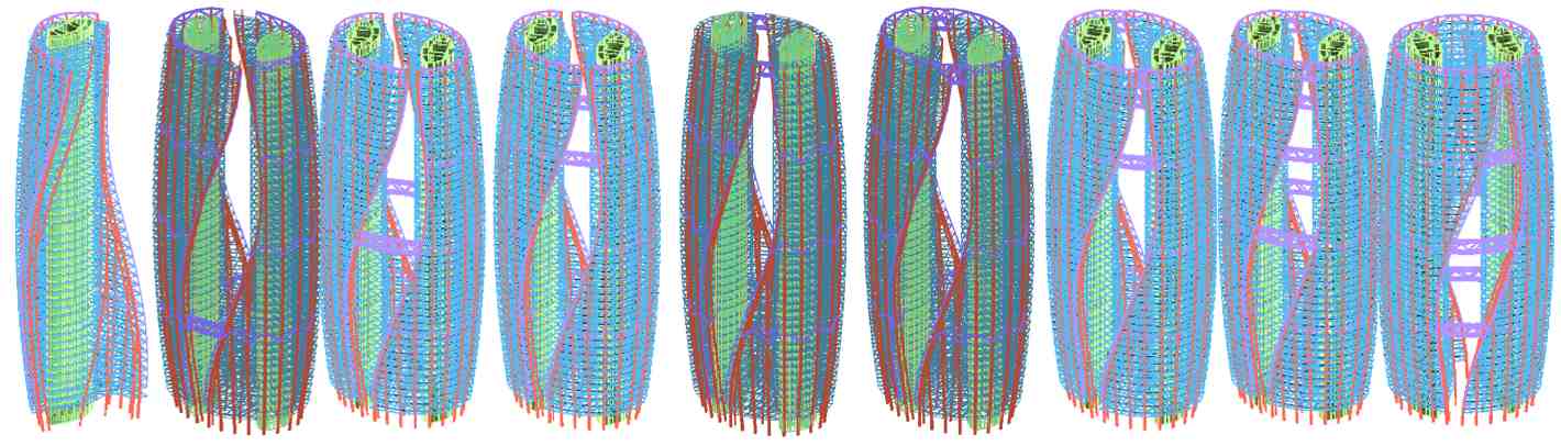 工程咨詢設計院麗澤SOHO項目組提出了4個主要的結構方案進行對比以及通過9個計算模型分析了不同部位連橋對結構整體性的影響,初步確定了麗澤SOHO的結構體系。
