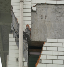 下圖是填充墻不當(dāng)布置導(dǎo)致的主體結(jié)構(gòu)構(gòu)件破壞
