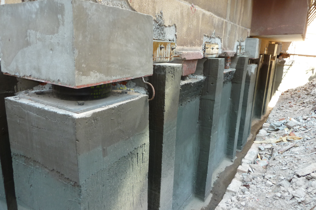 國內(nèi)首例采用自主生產(chǎn)疊層橡膠隔震支座進行中試的隔震建筑。