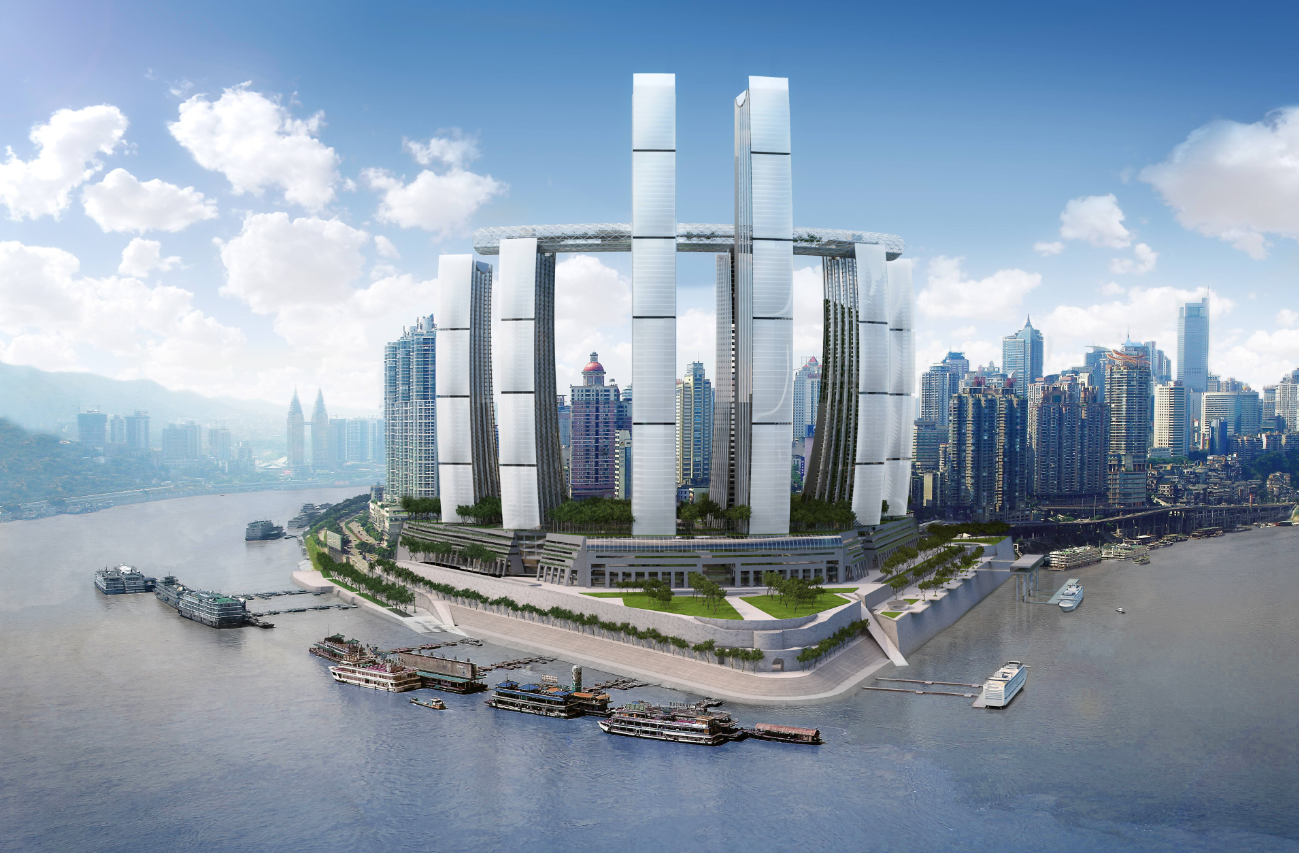 它橫跨在四棟塔樓頂部,與六棟包含高端住宅、辦公樓、服務(wù)公寓和五星級酒店的塔樓連通。