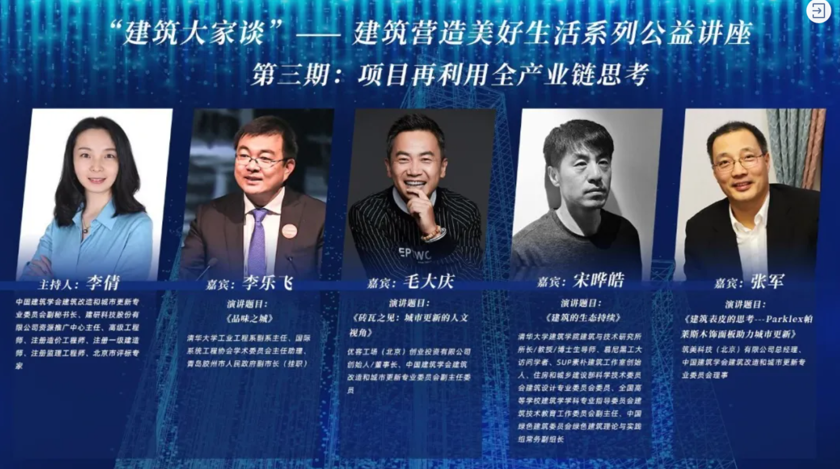 此次系列講座特別邀請了國內建筑行業知名學者、專家、企業家、建筑評論家共聚一堂,探討如何讓建筑從更加綜合、同時也更加細致的維度,帶給人們更新的生活感受,從而推動城市的更新和復蘇。此次講座由中國建筑學會建筑改造和城市更新專業委員會副秘書長李倩主持。