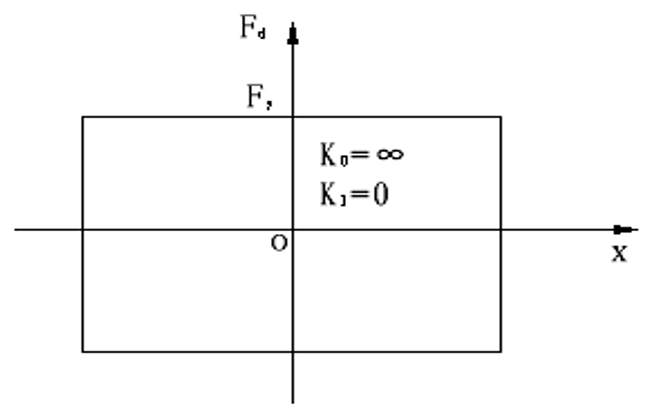 對于常規(guī)摩擦消能器在工作時分為不滑移和滑移兩種狀態(tài),在反復循環(huán)加載下消能器的滯回曲線為矩形。按照庫倫模型假定,摩擦消能器的摩擦接觸體相對滑移速度較小時,總滑動摩擦力的大小只與接觸表面情況和施加在接觸面上的力大小有關。因此,摩擦力可由剛塑性模型(阻尼力-位移骨架曲線見圖1)計算: