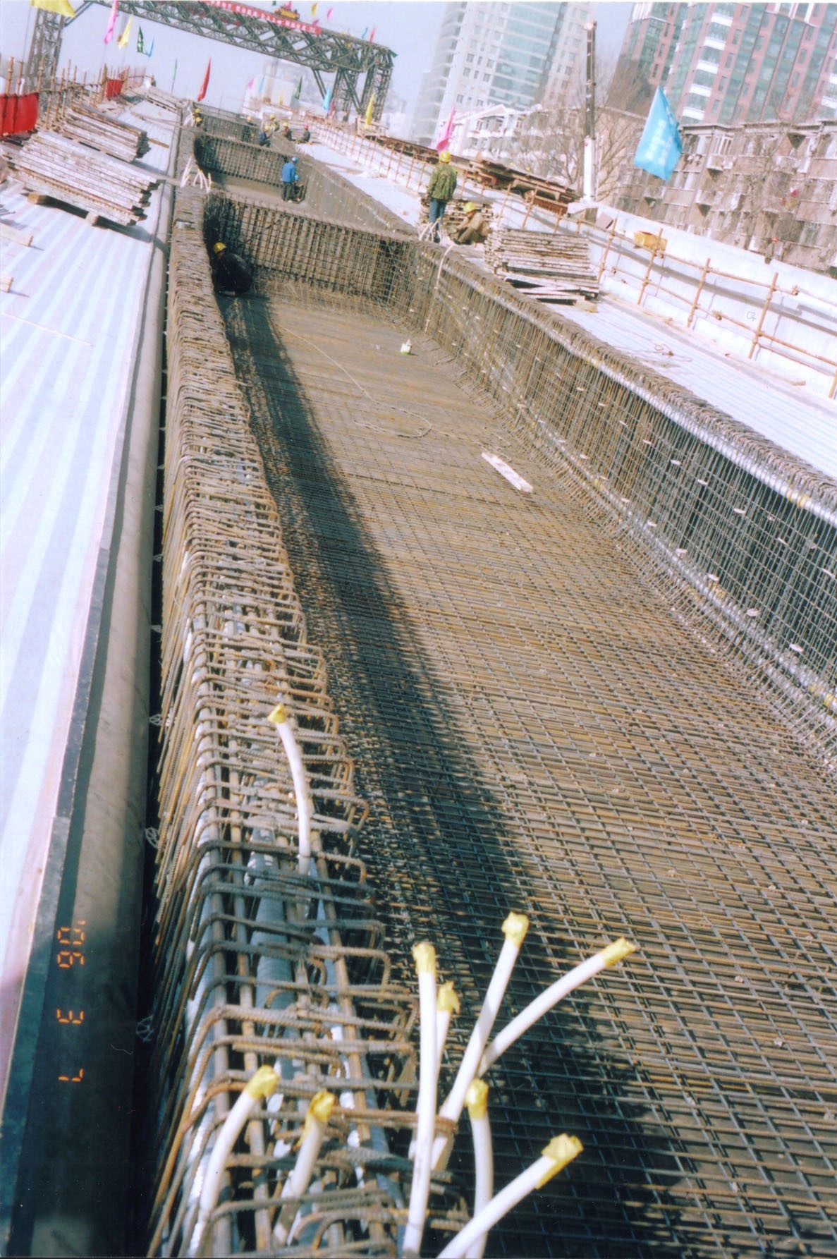 預應力施工。預應力T型簡支梁,跨度60m,國內(nèi)第一例雙幅面轉(zhuǎn)體施工的橋梁。